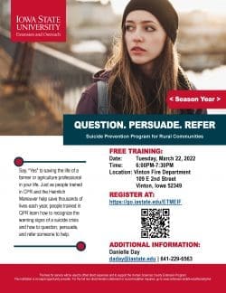 Suicide Prevention Program for Rural Communities: Question. Persuade. Refer.