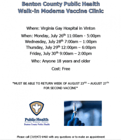 Walk In Moderna Vaccine Clinic-Week of July 26th